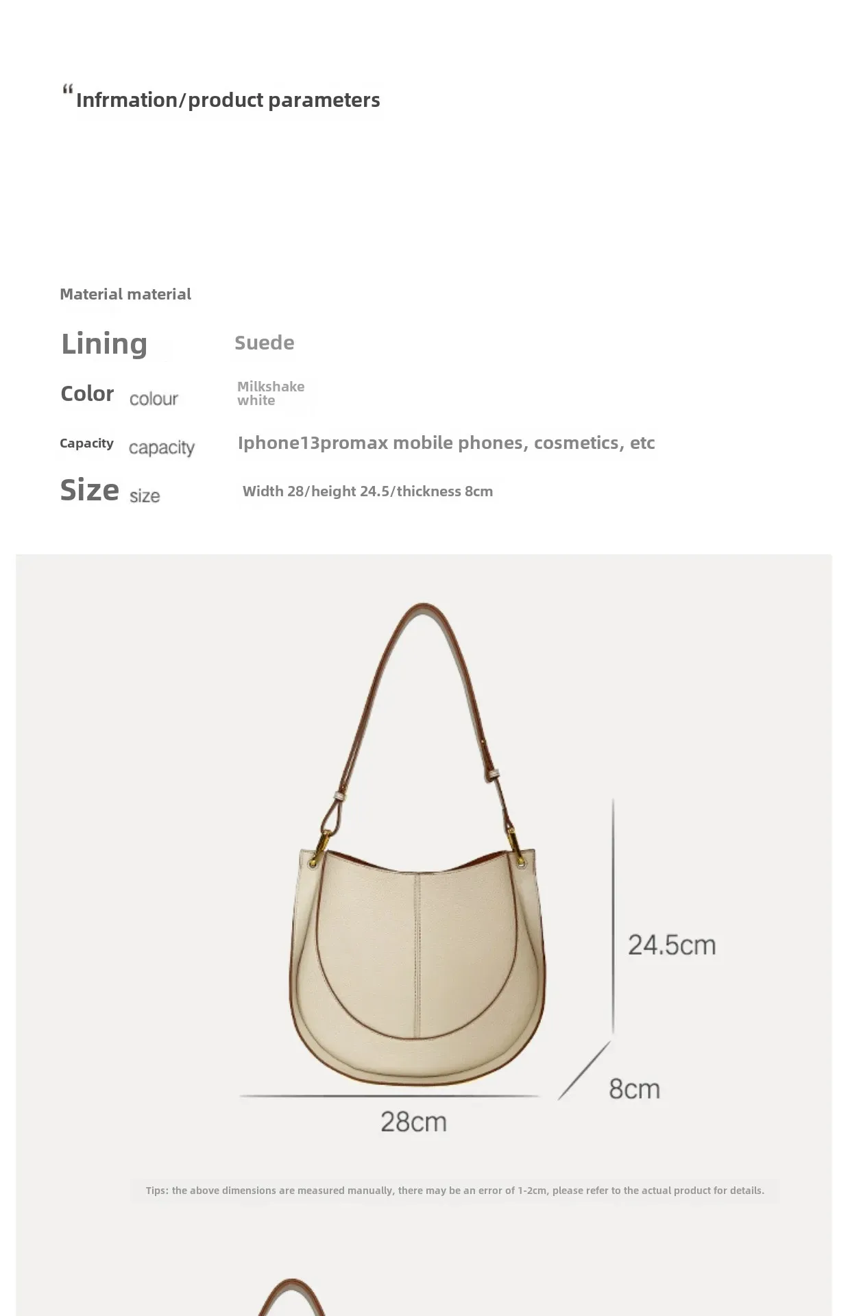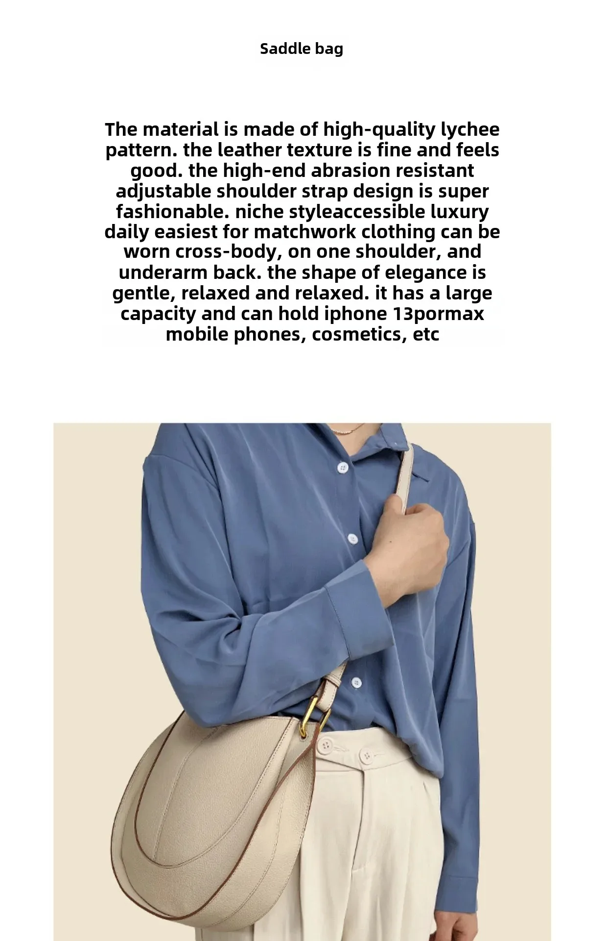 • Design elegante:Apresentando um design moderno de bolsa de selim, esta bolsa adiciona um toque de elegância a qualquer roupa.É um acessório indispensável para a mulher estilosa.