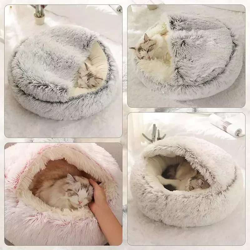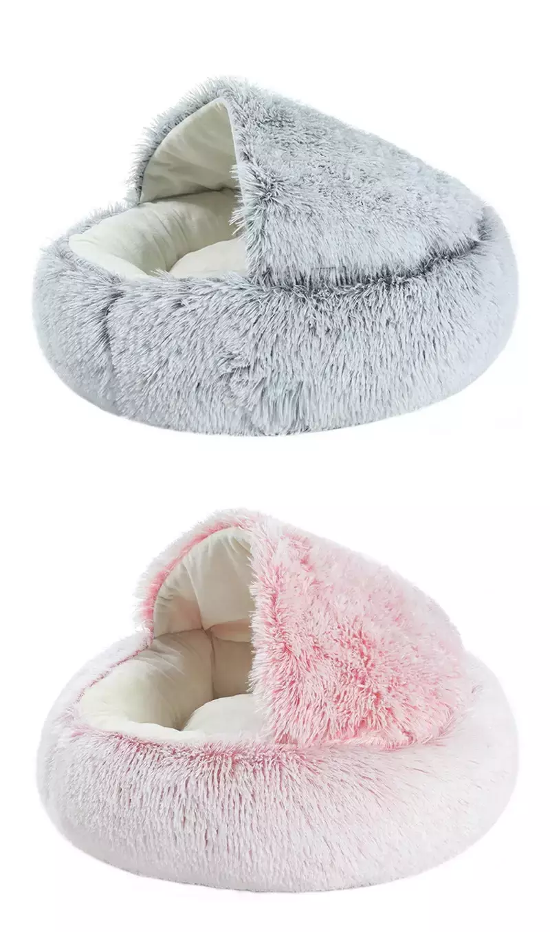 Cama para gatos, colchão para animais de estimação, quente, macio, pelúcia, com capa, redondo, gato, cachorro, ninho de dormir, caverna para cães pequenos, gatinho