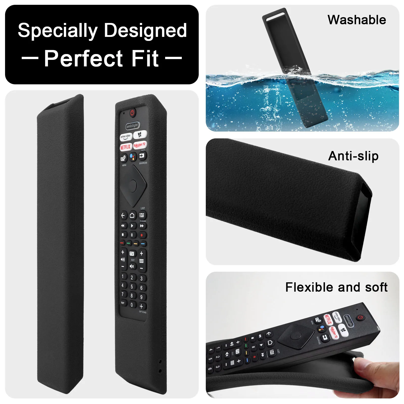 4.O material de silicone durável pode proteger seu controle remoto contra poeira, arranhões, colisões e abrasão.