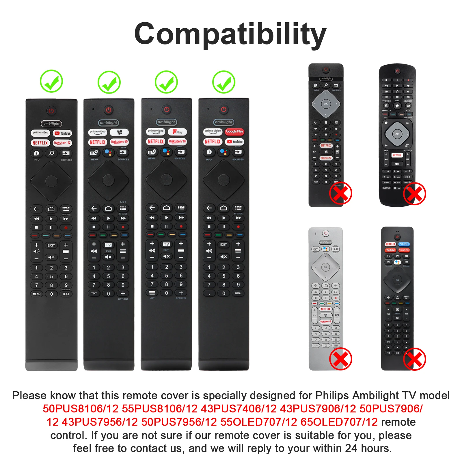 4.Adequado para controle remoto de TV Philips 50PUS8106/12 55PUS8106/12 43PUS7406/12 43PUS7906/12 50PUS7906/12 43PUS7956/12 50PUS7956/12 550LED707112 650LED707112