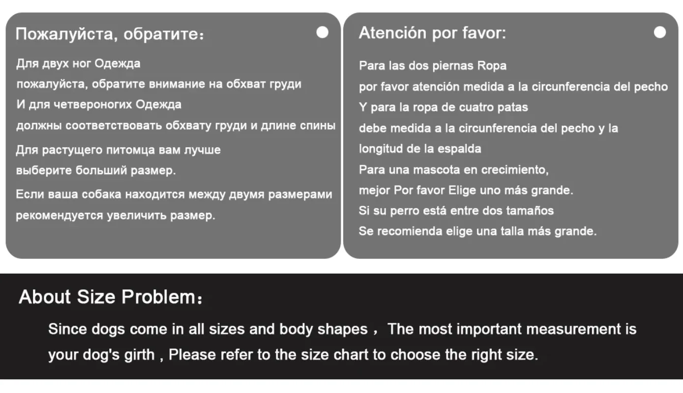 Os produtos de 6 tamanhos (XS-XXL) são adequados para a maioria dos cães.Use uma régua macia para medir o busto do seu cão antes de escolher um tamanho.(Você pode escolher um tamanho grande se o cão tiver entre 2 tamanhos.)