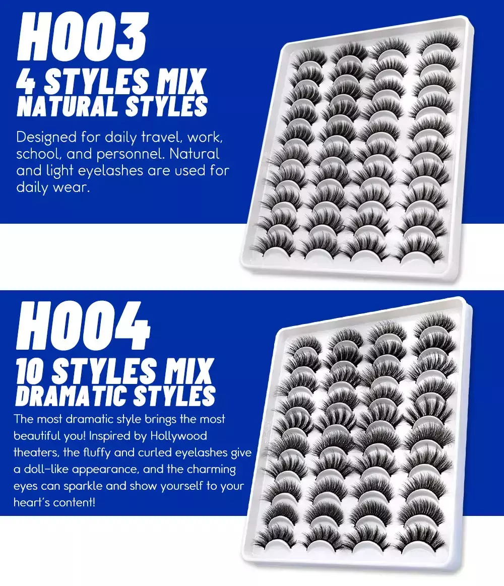 Uma variedade de estilos de cílios falsos para escolher, satisfazer plenamente a sua escolha de maquiagem dos olhos, criando maquiagem atraente e grande. Adequado para várias ocasiões, uma vez que os cílios são feitos à mão, haverá uma pequena diferença entre cada lote de produtos, o que é um fenômeno normal. Estamos empenhados em permitir que todas as mulheres tenham uma melhor experiência de uso de cílios, primeiro compre e depois decida!