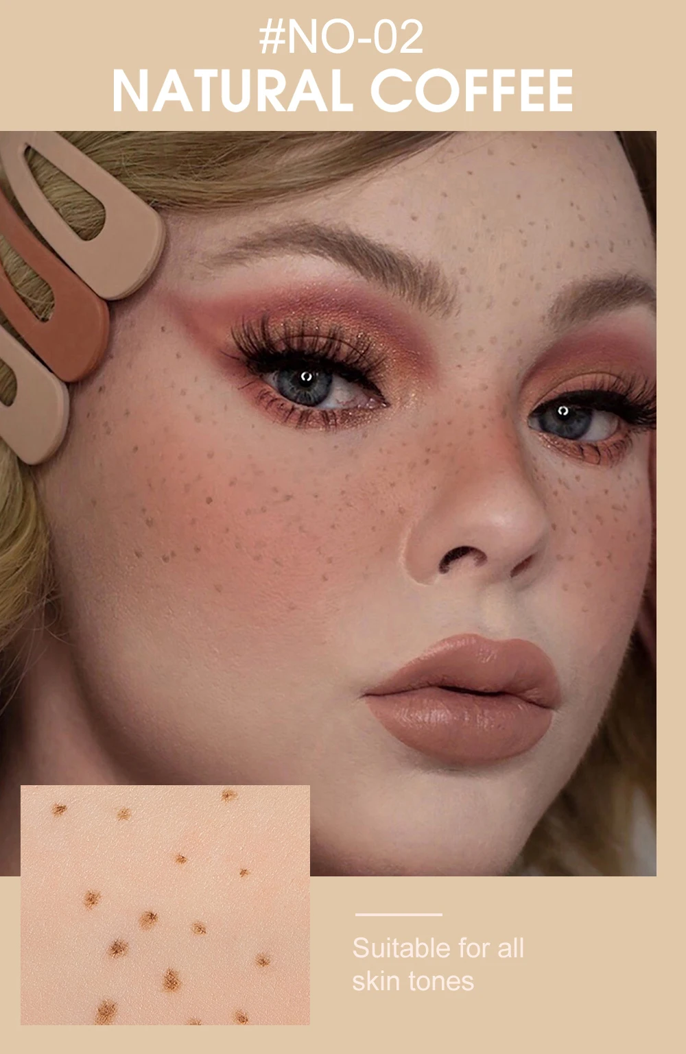 Suave e natural, revestido com ingredientes de mica, reprodução de cores suave e natural, rejeitando sardas embaraçosas.